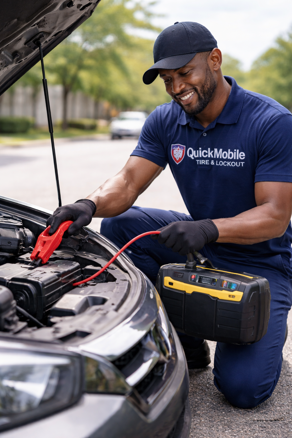 Flat tire, dead battery, lockout, or empty fuel tank — Quick Mobile Tire & Lockout delivers reliable on-site roadside assistance to get you moving again quickly and safely.